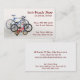 Carte de visite propriétaire d'une boutique de vélo avec un dessin de deux bicyclettes et un tricycle.