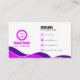 Présentez-vous avec style et professionnalisme en utilisant ce Carte de visite épuré moderne et simple violet. Conçue avec une palette de couleurs violettes épurée et une disposition minimaliste, cette carte exhale le raffinement et fait une impression durable. Parfait pour les entrepreneurs, les professionnels de la création, ou toute personne qui cherche à élever leur jeu de réseautage. Customisez la conception pour présenter votre nom, votre titre, vos coordonnées et votre logo de manière transparente. Faites de votre marque un inoubliable avec ce carte de visite moderne et chic.