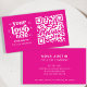 Améliorez votre jeu de réseautage avec le QR Code Business Logo Professional Modern Hot Pink Carte de visite. Cette carte branchée fusionne harmonieusement la marque professionnelle moderne et la fonctionnalité, conçue pour ceux qui veulent faire une impression durable. Doté d'une toile de fond rose chaud et audacieuse, ce carte de visite est non seulement attrayant, mais aussi personnalisable pour présenter votre logo unique, assurant à votre marque se démarque dans toute la foule. Cette carte est fournie avec un code QR scannable, permettant aux clients potentiels et aux connexions d'accéder instantanément à vos coordonnées numériques. Le côté avant affiche élégamment votre logo et les détails de votre clé, tandis que l'arrière offre un espace supplémentaire pour les messages personnalisés ou les slogans. Avec son design minimaliste mais élégant, cette carte allie professionnalisme et modernité, en faisant un outil essentiel pour l’environnement d’affaires dynamique d’aujourd’hui. Conçu pour la durabilité et la facilité d'utilisation, ce carte de visite rose chaud reflète votre engagement envers le professionnalisme moderne. Que vous soyez à un salon professionnel, à un événement de réseautage ou simplement à la remise de cartes à de nouvelles connaissances, ce carte de visite de code QR facilitera des connexions sans faille et améliorera votre présence professionnelle. Faites votre marque avec ce carte de visite moderne et élégant, conçu pour impressionner et inspirer.