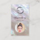 This elegant luxury business card features an iridescent mother-of-pear design and an elegant handwritten script. On the front side is a custom logo and a photo. On the reverse side is a scannable qr code and a custom template for name, address and socials. This professional glam business card is perfect for salon, make up artists, jewelry and more.