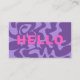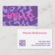 Bonjour dans une police en gras en rose chaud, sur une conception abstraite asymétrique en violet super, cette version a un code qr sur le dos.