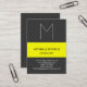 Carte de visite rayé jaune monogramme gris moderne