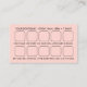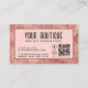 Carte de visite personnalisée avec design métallisé rose saumon et typographie sans-serif, et système de récompense classique au verso pour que les clients reçoivent quelque chose, c'est-à-dire une réduction, un article gratuit, etc. Cliquez sur 'Personnaliser' pour ajouter les détails de votre entreprise, y compris le nom, le type de service, le numéro de téléphone, le site web, l'adresse, le code QR avec texte, les heures d'ouverture, les informations supplémentaires et le système de récompense au verso.