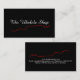 Un carte de visite noir avec un contour rouge de la moitié d'un ukulele de chaque côté. Au premier plan, le nom de l'entreprise est en blanc et à l'arrière les détails de l'entreprise. Il est personnalisable et prenez soin de le commander afin que tout le texte soit personnalisé. Souvenez-vous des deux côtés !