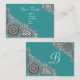 Carte De Visite RENAISSANCE Monogramme 2 bleu vert