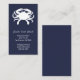 Créez votre propre cabane de crabe ou restaurant de fruits de mer cartes de visite avec un logo image silhouette. La zone de contact peut être facilement customisée. Il y a beaucoup de place à l'arrière pour ajouter des informations sur les heures d'ouverture, les offres spéciales pour le dîner, une carte de localisation, un code QR ou un coupon de réduction pour les nouveaux clients. Modifiez la couleur bleu marine arrière - plan foncé sur l'avant et/ou l'arrière. En plus de créer un design personnalisé, vous changez la calligraphie et le style d'écriture manuscrite face, taille et couleur.