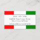Ce carte de visite coloré présente une image du drapeau italien imprimé de part et d'autre. Un exemple de nom de restaurant italien ou de pizzeria est imprimé en haut, suivi d'un numéro de téléphone. Le dossier contient des informations complémentaires sur les contacts ainsi qu'une courte liste de produits. Il est parfait pour un épicerie, un restaurant, une pizzeria ou tout autre commerce italien.