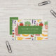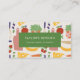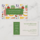 carte de visite captivant les yeux avec un motif d'outils de cuisine et de nourriture, comme des pommes, du basilic, des whiskies, des couteaux, des planches à découper, du fromage, des bananes, et plus encore dans des couleurs douces et un look rétro amusant pour une restauration, un chef personnel, ou similaire.