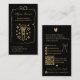 Carte De Visite Retro Gold Black Doodles Makeup Artist QR Code