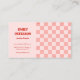 Ce carte de visite de style rétro est doté d'un arrière - plan rose à damiers et d'une police rouge contrastée. Ajoutez les informations de votre entreprise et les médias sociaux ou le site Web à l'arrière de la carte.