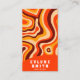 Un Vintage rétro Psychedelic coloré carte de visite liquide. Il dispose d'un boho motif super fait main abstraites formes ondulées lignes.Dans élégant chic orange et marron et beige. Moderne mais il a nostalgique seventies vibes et couleurs et polices super. Avec nom et profession personnalisables et code QR.