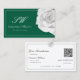 Carte De Visite Rose blanche sur vert avec initiales QR Code