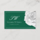Carte De Visite Rose blanche sur vert avec Initiales simple