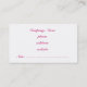 Un jeu de couleurs rose vif orne ce carte de visite professionnel. Customisez ce carte de visite moderne pour répondre à vos besoins. Modifier le texte, la taille de la police, etc... Ajouter ou supprimer du texte. Le design est de l'art original. Utilisez ce carte de visite professionnel pour une boutique, bijoux, conseil, design graphique, planificateur événementiel, boulangerie, fleuriste, cosmétologiste, rendez-vous, coiffeur, salon, spa, salon de ongles, décoration maison, design d'intérieur, musicien, etc...