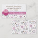 Joli carte de visite de boulangerie fait avec l'illustration graphique des points lunatiques et du motif de cercles, sur le fond et le dos de la carte. Un petit gâteau de rose de bande dessinée se repose placé sur un ruban rose au-dessous du secteur blanc des textes de la carte. Personnalisez le texte pour vos affaires de boulangerie. Grand pour à la maison des boulangers aussi.
