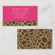 Carte De Visite rose d'impression de girafe