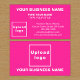 Carte de visite que vous pouvez customiser pour vos clients ou clients de trouver facilement votre adresse professionnelle et les coordonnées de votre contact. Les couleurs et le style de design sont des textes blancs sur des textes arrière - plans roses et centrés des textes de votre nom d'entreprise, de votre nom et de votre titre. Pour customiser ce carte de visite, téléchargez votre logo d'entreprise, tapez votre nom d'entreprise, votre nom, votre titre, votre adresse, votre numéro de téléphone, votre courriel et votre site Web ou votre page de médias sociaux professionnels. Après avoir téléchargé le logo et tapé des textes, veuillez vérifier l'apparence sur les côtés avant et arrière. Si l'apparence vous plaît, vous pouvez passer votre commande maintenant. Si vous avez besoin de redimensionner et déplacer le logo et les textes pour s'adapter à ce carte de visite, s'il vous plaît changer dans l'outil de conception. Vous pouvez également effectuer d'autres modifications dans l'outil de conception en fonction de l'apparence de ce carte de visite que vous préférez, comme changer la couleur arrière - plan, la couleur de police et le style de police.