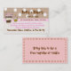 Carte de visite lunatique d'amusement fait dans le pois et les rayures bronzages, blancs, et roses. Un arc rose doux et une illustration mignonne d'agrafe d'un gâteau et de gâteau de tasse décorent l'avant de cette grande carte. Un bon de style de coupe-circuit du verso. Perfectionnez pour un magasin de boulangerie, le magasin de partie, ou un boulanger fait sur commande indépendant. Customisez les gisements des textes pour personnaliser pour vous-même ou votre magasin. Pour une gamme entière des produits assortis cliquez sur dessus mon lien nommé et regardez dans la section appelée Business Solutions.
