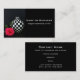 Un design de vie morte avec un arrière - plan noir avec une rose rose rose posée à côté d'un vase à damiers noir et blanc. design professionnel carte de visite qui pourrait convenir aux décorateurs d'intérieur, des designers, l'organisation d'événements etc..