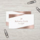 Carte de visite coiffeur élégant avec texture or blanc et faux rose, ciseaux et police calligraphie moderne.