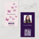 Le Pink Nice To Meet You QR Code Social Butterfly Carte de visite est en format portrait et fait partie de la collection "Pink Butterfly - Bath, Beach, Yoga and Travel". Un flutter rose avec un arrière - plan roux orne l'avant. Il porte le message d'appréciation d'avoir rencontré et l'icône des réseaux sociaux pour Instagram, Tik-Tok, Pinterest et Facebook avec votre poignée sociale. Sur le dos en violet foncé est l'espace pour votre photo de profil, nom et une invitation à scanner le code QR pour se connecter. Pour plus d'idées de décoration pour les affaires, les maisons et les murs, visitez www.KBMD3signs.com. Pour toute demande de conception personnalisée ou pour obtenir de l'aide sur la personnalisation, contactez info@KBMD3signs.com.