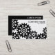 Un modèle de carte de visite avec un arrangement de cogs. Nom de l'entreprise et type d'entreprise sur le devant, avec nom et autres coordonnées au verso. La conception peut être customisée de diverses façons.