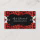 Carte de visite rouge, noir, blanc et argenté d'impression de guépard.