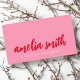 Des cartes de visite branchés avec votre nom dans une police de caractères rouge et audacieuse sur un fond rose avec le titre ci-dessous en blanc. Coordonnées sur le dos.