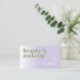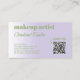 Magnifique carte de visite de maquillage artistique de style élégant et minimaliste. Carte de visite contemporaine couleur lavande lilas violet lavande avec un moderne rétro et minimaliste vert sauge et une police blanche classe sophistiquée. Cliquez sur "Personnaliser" pour trouver le modèle prêt à être customisé avec votre nom d'entreprise unique, votre profession et vos coordonnées, le texte et le code QR de votre choix. Ce design particulier et unique a été fait pour ceux qui aiment les conceptions fortes classiques sophistiquées.