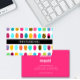 Design audacieux et coloré et ludique. Des ongles colorés à motifs en jaune, turquoise et rose néon recouvrent la carte avec une seule bande noire au centre pour le nom de famille. Le verso de la carte est du texte blanc sur un arrière - plan rose ceint. Tout sur le design peut être customisé.