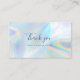 "Un arrière - plan holographique mignon et brillant vous remercie carte de visite pour les propriétaires de petites entreprises et les grandes entreprises. Le design comprend un arrière - plan moderne, script, typographie, polices tendance et simple mais efficace. Parfait pour un esthéticien ou un propriétaire de salon de beauté, un maquilleur, un costumier, un coiffeur, un coiffeur ou un cosmétologue." Ajoutez simplement votre logo, votre nom et vos détails commerciaux à cette carte lumineuse et moderne en cliquant sur le bouton "Personnaliser" ci-dessus. REMARQUE : Les détails holographiques sont simulés dans l'illustration. Il n'y aura aucun effet holographique réel de brillance lors de l'impression.