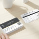 Laissez votre marque de coiffure ou de salon de coiffure se démarquer par cette carte de visite minimaliste moderne, conçue pour les professionnels qui veulent laisser une impression durable. Son design élégant, élégant et élégant, noir et or, traduit le raffinement et un charme masculin et moderne, parfait pour les salons pour hommes et les coiffeurs. Doté d'un ciseau pointu et d'un comb graphique, il met subtilement en valeur votre artisanat tout en laissant de l'espace pour présenter votre propre logo de salon pour une personnalisation complète de la marque. L'avant comprend un code QR pratique, ce qui permet aux clients de réserver des rendez-vous ou de consulter votre portefeuille instantanément. Sur le dos, un suivi de rendez-vous clair maintient votre planning organisé, transformant chaque carte en un outil pratique pour les affaires répétitives. Que vous soyez un coiffeur, un coiffeur ou un propriétaire de salon, cette carte allie style haut de gamme et fonctionnalité professionnelle, saisissant l'essence du style contemporain salon de coiffure tout en vous aidant à vous démarquer de la concurrence.