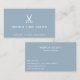 Une carte de visite moderne et professionnelle parfaite pour un salon de coiffure, un coiffeur ou un coiffeur. La carte présente un logo graphique d'une paire de ciseaux. Un design chic et sobre dans un bleu poussiéreux. Les modèles de texte sont personnalisables pour répondre à vos besoins de marque et de marketing.
