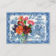 Des fleurs colorées dans un vase sont posées en face d'un plan de saule bleu traditionnel. Les motifs bleus du vase font écho aux couleurs et au style de la toile de fond d'inspiration asiatique. Les fleurs lumineuses ont un aspect contemporain même si elles ont été imprimées sur une carte de commerce victorienne antique. Cette belle image peut décorer les invitations, les annonces et l'intérieur de votre maison.
