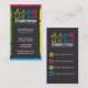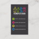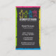 Un carte de visite vraiment mignon comportant une frontière déchiquetée de vert, de fuchsia, jaune et bleue sur la conception avant, même colorent les icônes sociales dessus de retour de la carte, dos gris-foncé. Quatre enfants abstraits illustrés dans la couleur verte, fuchsia, jaune et bleue. Vraiment une carte parfaite pour tous services de programme d'enfants, jouets, cosmétiques, et beaucoup d'autres affaires appropriées et utilisations personnelles. Fortement personnalisables, vous pouvez supprimer les icônes sociales soutenez dessus si vous ne préférez juste le texte ou rien. Personnalisez le texte fourni avec votre information désirée.