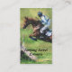 Un modèle de carte de visite pour les instructeurs de monte, les entraîneurs ou les revendeurs avec une peinture à l'huile effectuent le cheval et le cavalier s'attaquant au-dessus d'un saut de pays croisé à un événement.