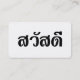 Carte De Visite Sawatdee / Hello ~ Thailand / Thai Language Script