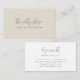 Cartes de visite élégants et simples pour toute occupation comprennent deux lignes de texte en gris classique doux, avec votre nom ou nom d'entreprise dans un script de calligraphie élégante lettré à la main lettré sur un arrière - plan taupe amande légère. Customisez le dos avec vos coordonnées complètes.