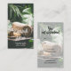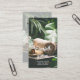 Une élégante carte de visite de spa avec un cadre blanc transparent sur l'avant et plus de détails sur l'arrière dispose d'un design de fleurs, feuilles, huile et serviettes. Personnalisez ce carte de visite pour être le vôtre.