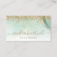 Cet élégant carte de visite moderne est décoré d'une image arrière - plan d'or et de marbre vert, encadré au sommet par une bordure en faux parties scintillant or. Personnalisez-le avec votre nom en écriture manuscrite couleur or et vos informations d'affaires en sans serif font. Un dégradé blanc aide à faire apparaître le texte. Le verso est composé d'un texte de couleur or sur un motif de marbre et de parties scintillant assorti. Idéal pour les coiffeurs, maquilleurs et esthéticiennes.