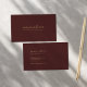 Carte de visite professionnel bordeaux et or avec typographie de script minimale et design simple.