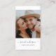 Cartes de visite de photographie moderne et professionnel avec votre photo avec une typographie de script minimaliste tendance. Ajoutez vos coordonnées ainsi que votre code QR personnalisé à l'arrière. Comprend trois icônes de médias sociaux et un champ pour votre nom d'utilisateur.