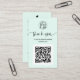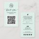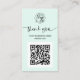 Script minimaliste moderne et code QR en noir et vert menthe pastel ordre d'affaires merci. Ajoutez vos médias sociaux. Avec une police de script de signature élégante, toutes les couleurs sont modifiables, ajoutez votre logo. Avis 5 étoiles pour vos clients.