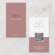 Boho Chic Dusty Rose Pink Calligraphy Script qr code Carte de visite moderne minimaliste. Personnalisez le monogramme, le script et les détails de cette typographie féminine simple et propre. Idéal pour les architectes d'intérieur, planificateur d'événements, wedding planners, consultants, maquilleurs et salons de beauté. Une carte parfaite pour votre entreprise !