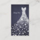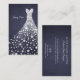 Carte de visite de marine élégante et élégante, élégante et élégante, avec une belle robe de mariage en diamants blancs stylisés sur un arrière - plan vintage en damier bleu clair de minuit avec un script de calligraphie simple et chic. +++++++++++++++++++++++ Apporte un look élégant et élégant, adapté aux wedding planners, stylistes ou propriétaires de boutique mariages.