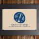 Un carte de visite professionnel pour un notaire public, un service d'apposition ou un agent de signature de prêt. Avec un design boho terreux avec un stylo quill et une bouteille d'encre. Incorporer des formes abstraites avec des éléments botaniques et floraux dans une palette de couleurs bleu et naturel muet. Un joli design féminin et bohème. Modifiez les modèles de texte pour votre propre carte de visite personnalisé.