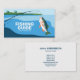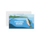 Un carte de visite pour un service de guide de pêche illustré d'une canne de pêche avec un poisson pêché accroché à la ligne. L'arrière - plan est un lac serein entouré de quelques arbres. Il conviendra aux entreprises ou aux activités telles que guide de pêche, pêcheur, magasin d'appâts et de matériel, charte de pêche, etc.