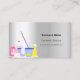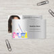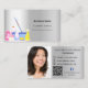 Un carte de visite élégant et glamour sur un arrière - plan faux argenté décoré d'équipements de nettoyage. Personnalisez et ajoutez votre photo, nom, informations de contact textuel et votre propre code QR à votre adresse de site Web.