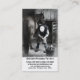 Ce carte de visite se tient avec une belle fin vers le haut de photographie avec l'effet desatured de couleur de style de daguerotype d'un homme enlevant une vieille chaussure de cheval avant de méticuleusement érafler et classer un sabot de cheval ainsi il peut être chaud chaussé. Arrangement étrange, de grange avec une stalle faite de vieux panneaux en bois de grange, et un seau plein de divers outils de maréchal-ferrant. Personnalisez avec votre information pour adapter à vos services de soin d'agriculture ou de sabot de cheval.