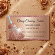 Élevez votre entreprise de ménage avec une carte qui brille aussi bien que vos résultats! Ce carte de visite glamour est doté d'un arrière - plan or rose métallique éblouissant et d'une parties scintillant chatoyante. Le graphisme principal est un balai chic recouvert de parties scintillant, offrant parfaitement un service de nettoyage classique haut de gamme. La conception répertorie clairement vos options de service (Quotidien - Hebdomadaire - Mensuel - Une fois) directement sur le devant. Customisez le nom (p. ex. "Melanie Parker") et les coordonnées pour attirer les clients qui apprécient à la fois la qualité et le style.